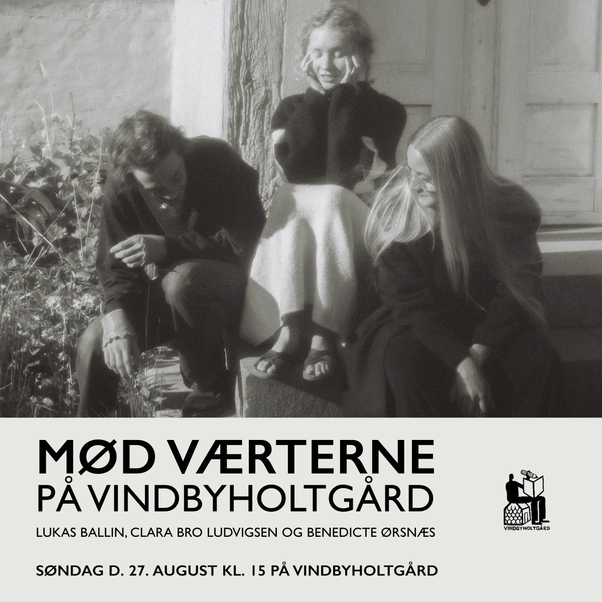 Lukas Ballin, Clara Bro Ludvigsen og Benedicte Ørsnæs er alle uddannede fra den svenske forfatterskole Biskops Arnös Författarskola og flyttede ind i værtsboligen på Vindbyholtgård i april 2023. D. 27. august 2023 præsenterede de sig selv og læste op af hvert sit projekt i de smukke omgivelser.