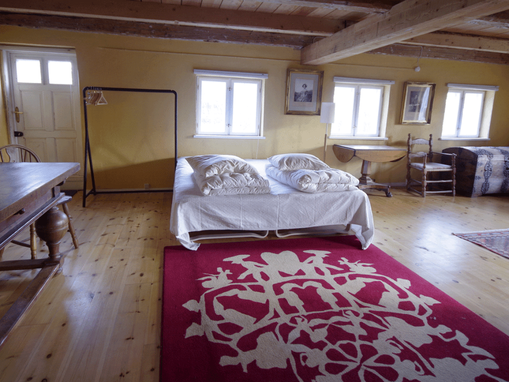 På værelset findes 2 x 90 cm cm brede senge med dyner, puder, sengetæppe og uldplaider. Du bedes selv medbringe sengelinned.